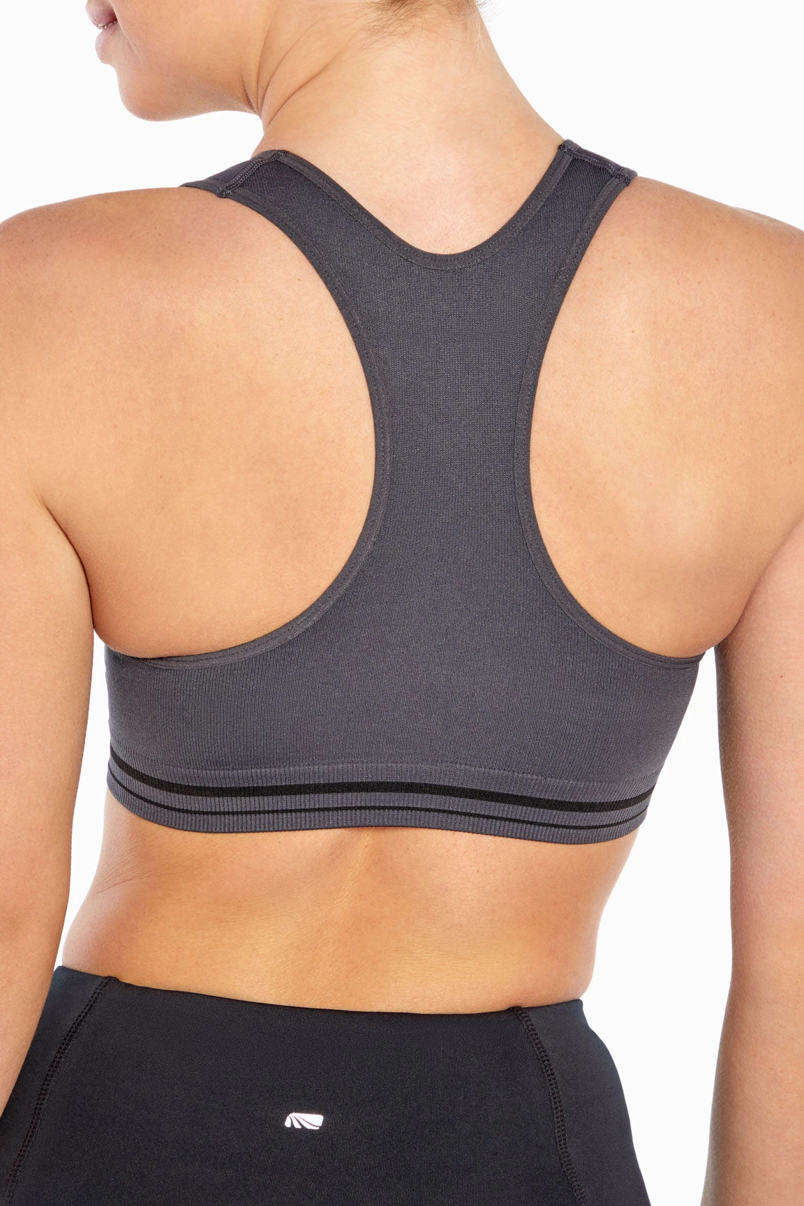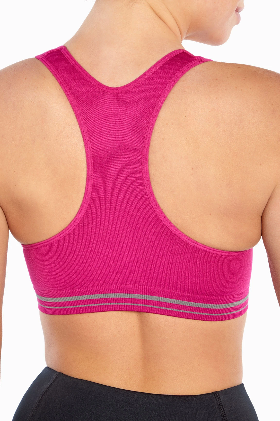 Two is better than one with these seamless, low-impact sports bras, featuring scoop necks, racerbacks, ribbed trim, and a comfort that moves with you.