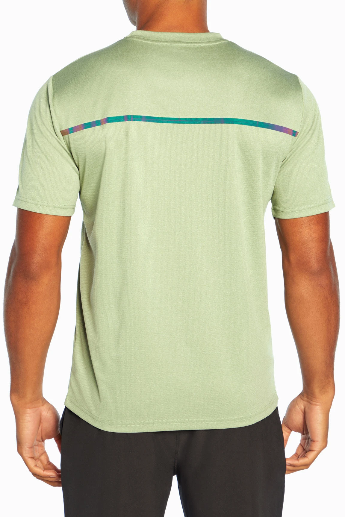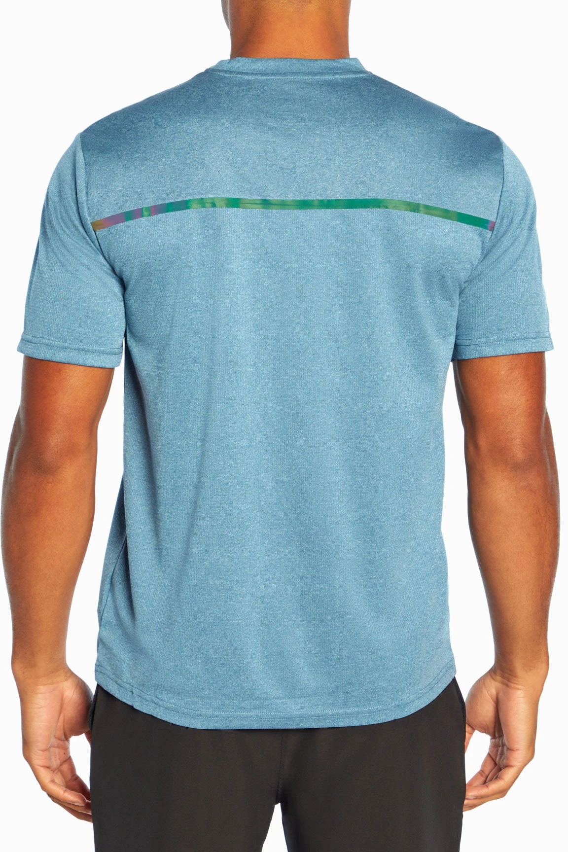 Throw this short-sleeve tee on before you tackle your exercise ropes โ the moisture-wicking will handle your sweat, while the contrast detail at the yoke take care of style.