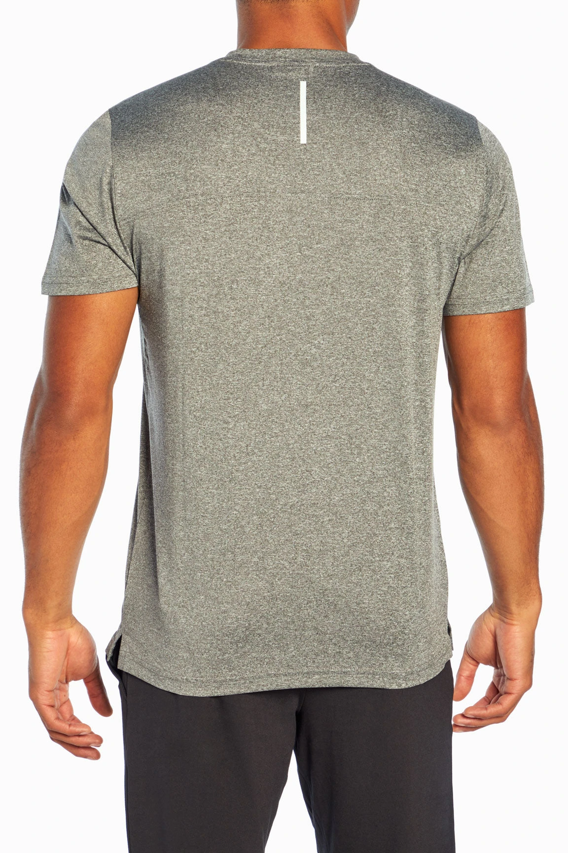 Two-a-days are a walk in the park in this tee that features moisture-wicking fabric and a vented hem.