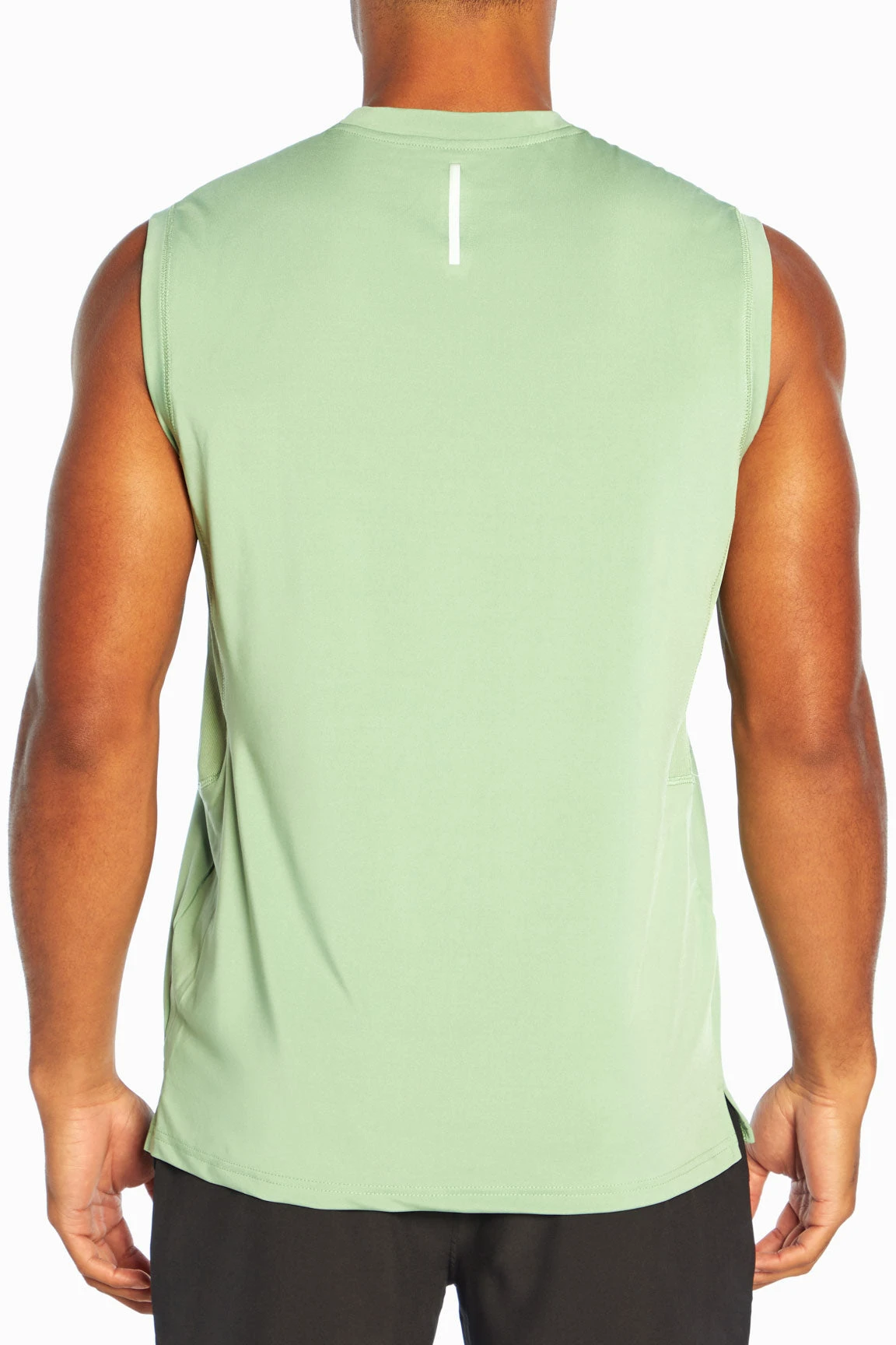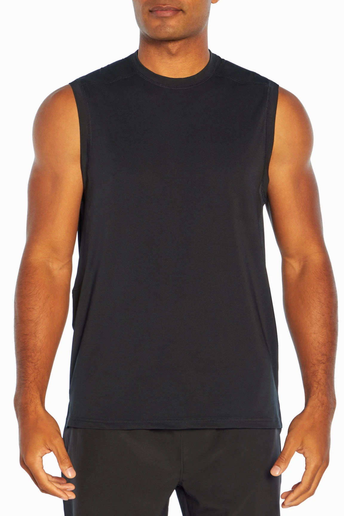Created for the toughest circuit, this sleeveless tank features moisture wicking, forward shoulder seams, underarm contrast insets, and a vented hem.