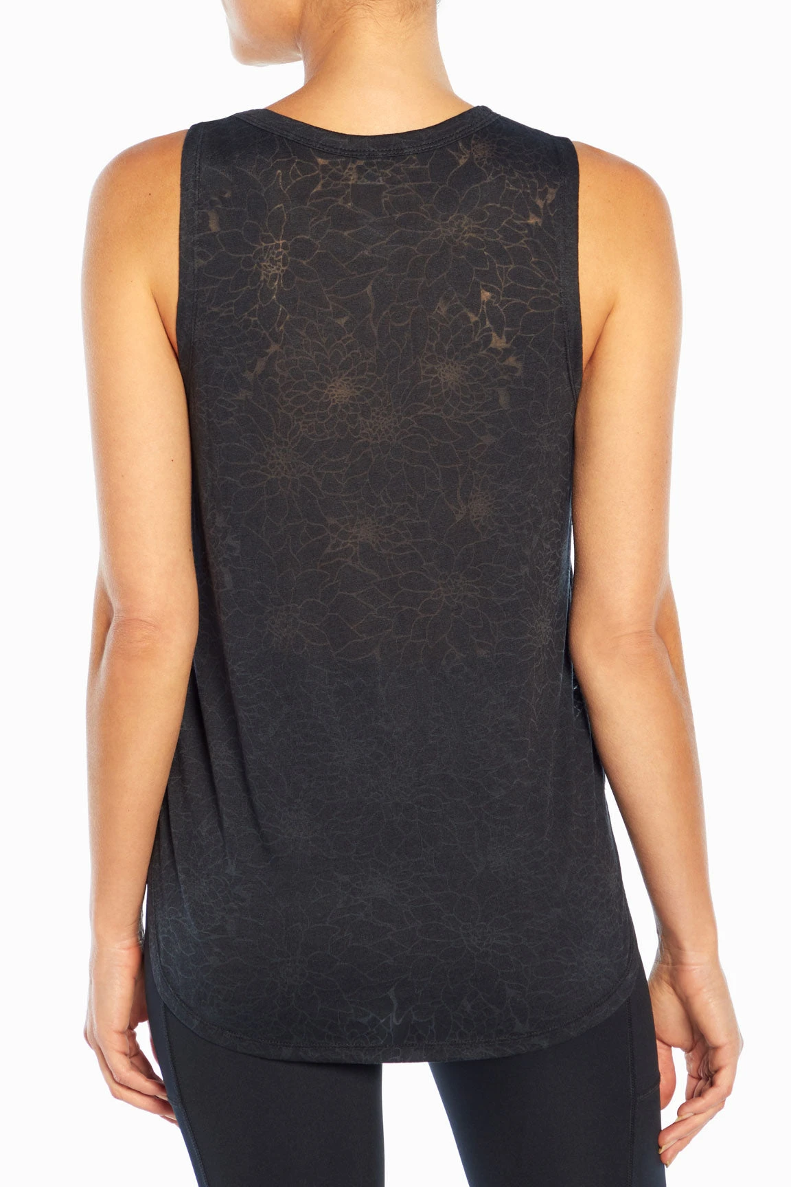 Feel breezy on your next run in this burnout tank, featuring a high-low hem and side slits.