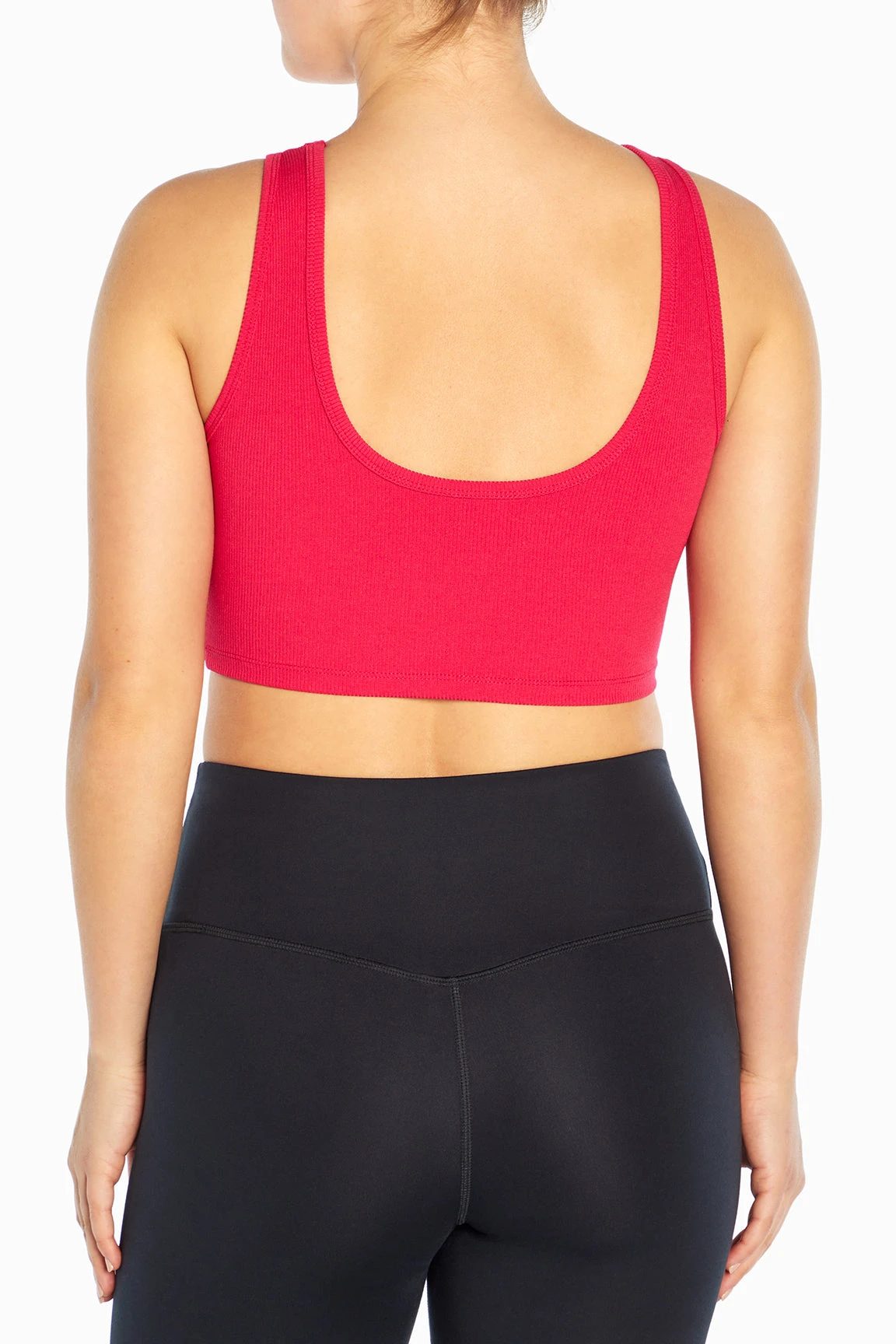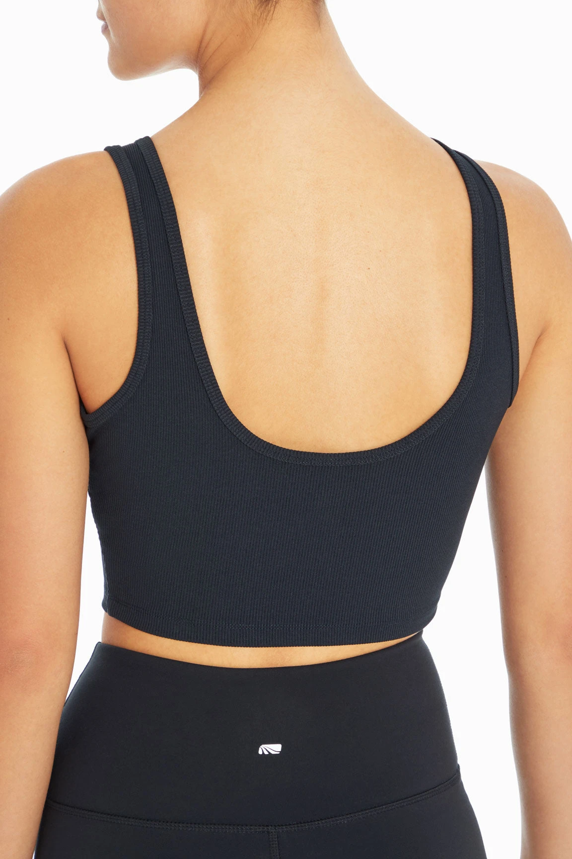 Break your previous indoor cycling records in this Cycle House powered by Marika crop tank, featuring moisture-wicking fabric and plunging scoop back.