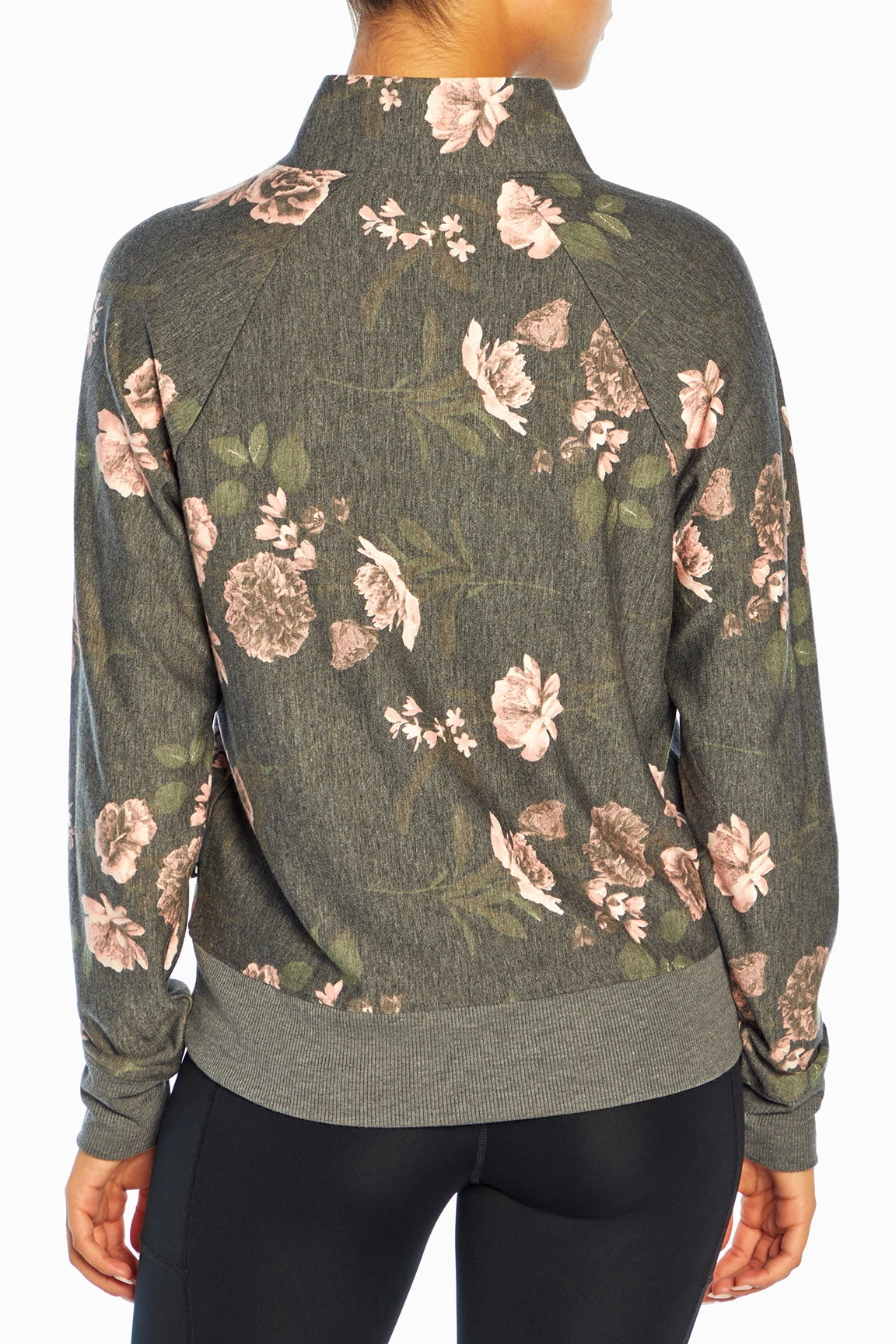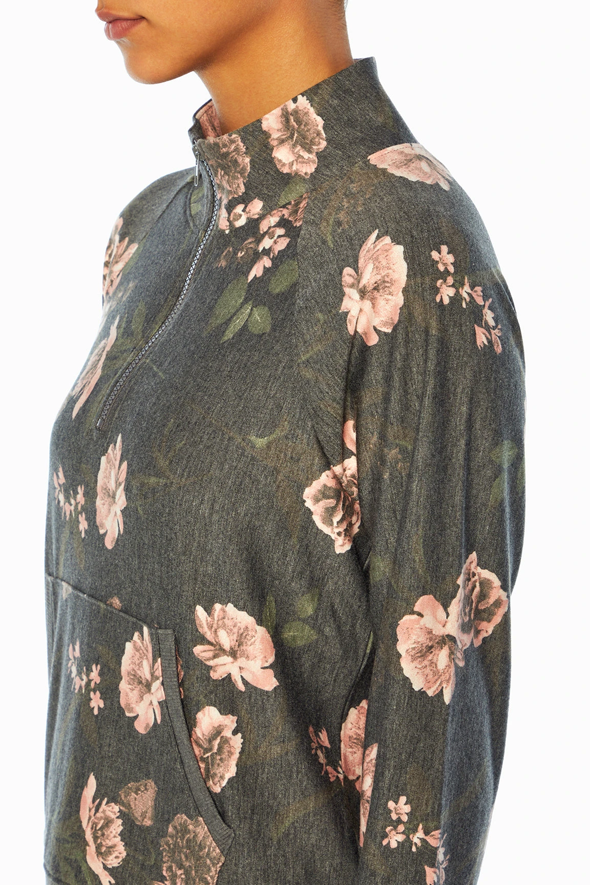 Pull this French terry jacket over your head and go, with its funnel neck, partial zip-front placket, raglan sleeves, front kangaroo pocket, and ribbed trim.