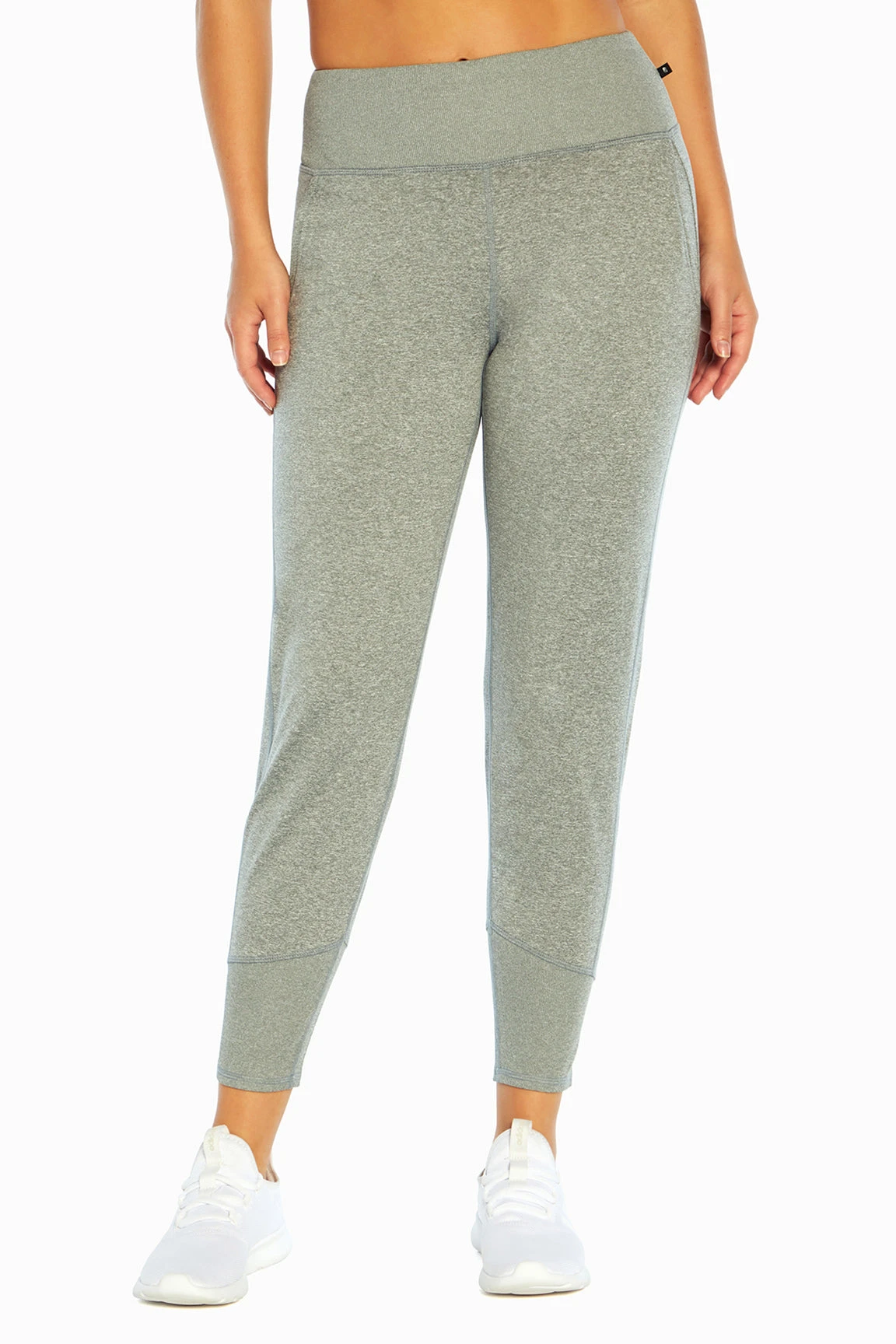 Made to move comfortably through your day, this soft, warm, and cozy jogger features front slanted pockets, front and back style seams, dropped hem, and moisture-wicking material.