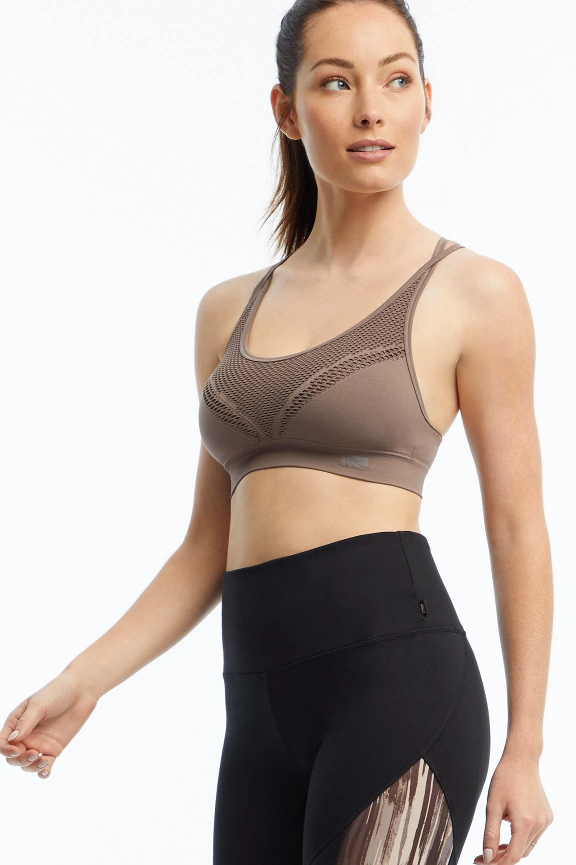 Stay ventilated while you whisper, “Namaste,” in this low-impact, seamless sports bra — the laser-cut detail throughout is both stylish and functional. The removable cup pads and double straps earn extra cool points!