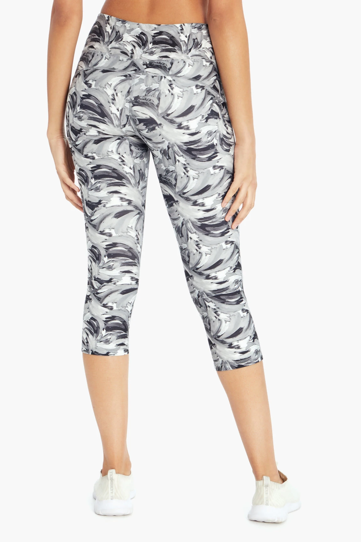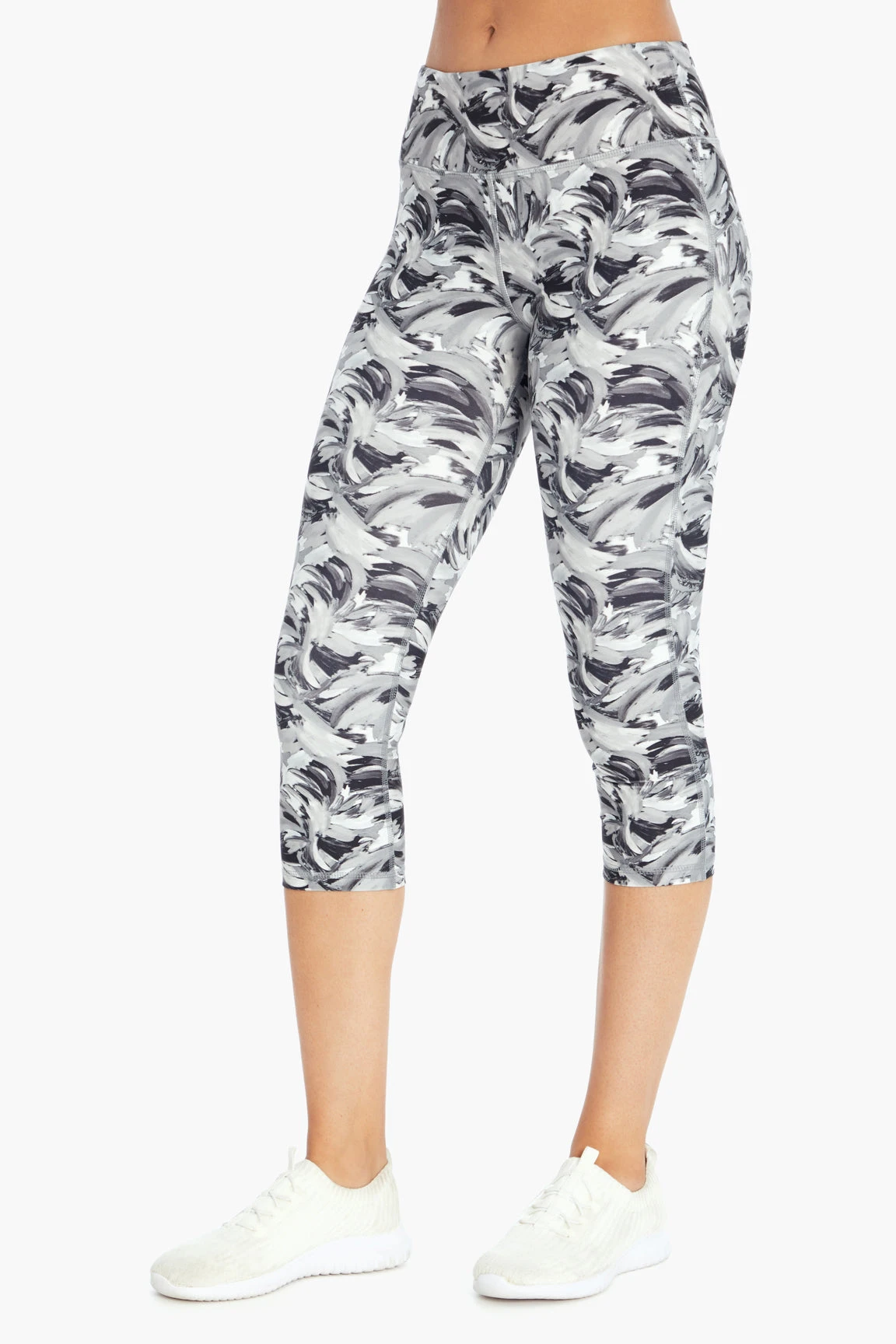 With a bold print and fabric that helps to keep you dry, these workout-ready capri leggings feature a hidden inner pocket at the waistband, as well as flattering seams throughout.