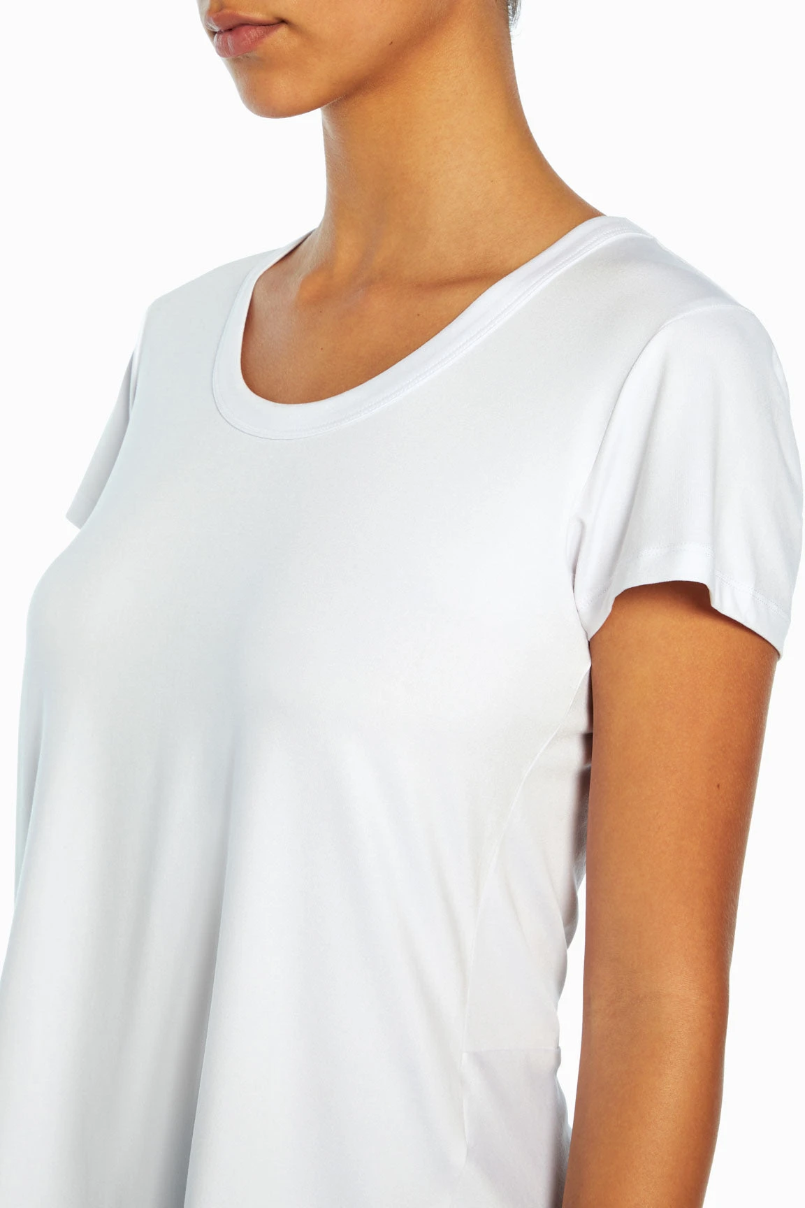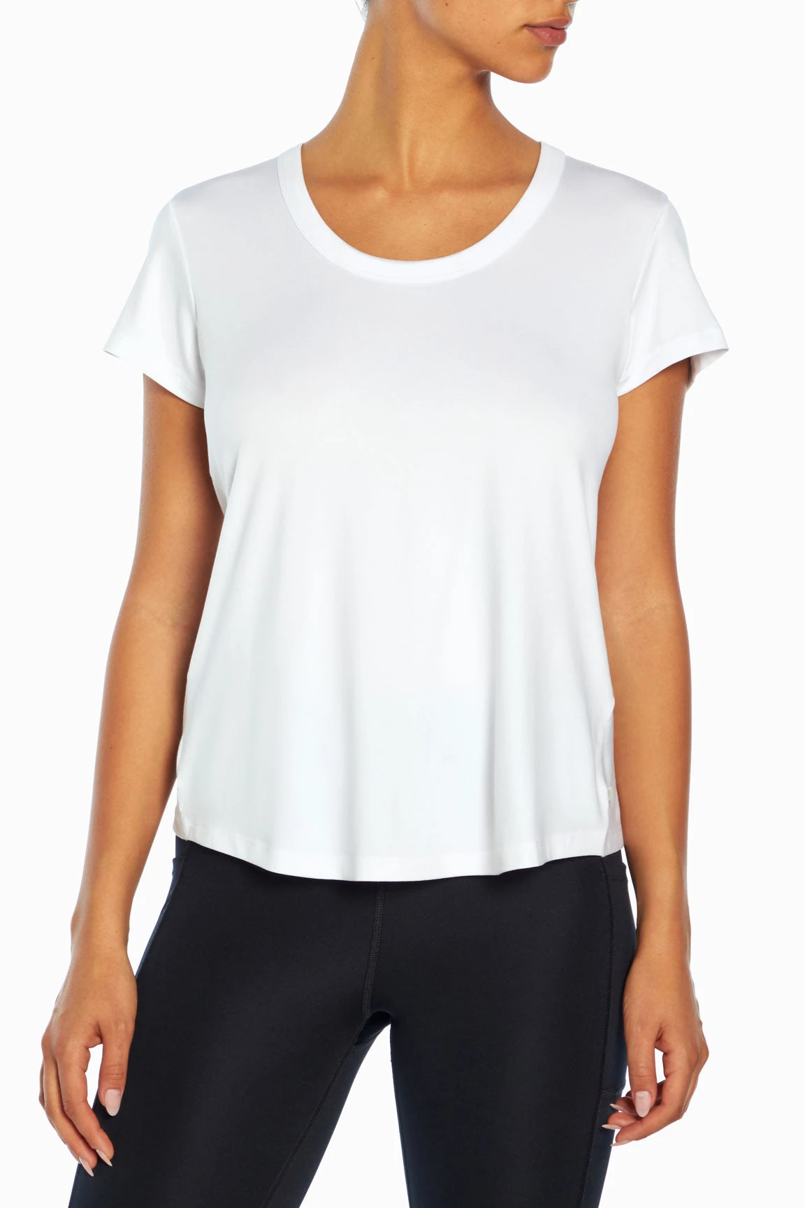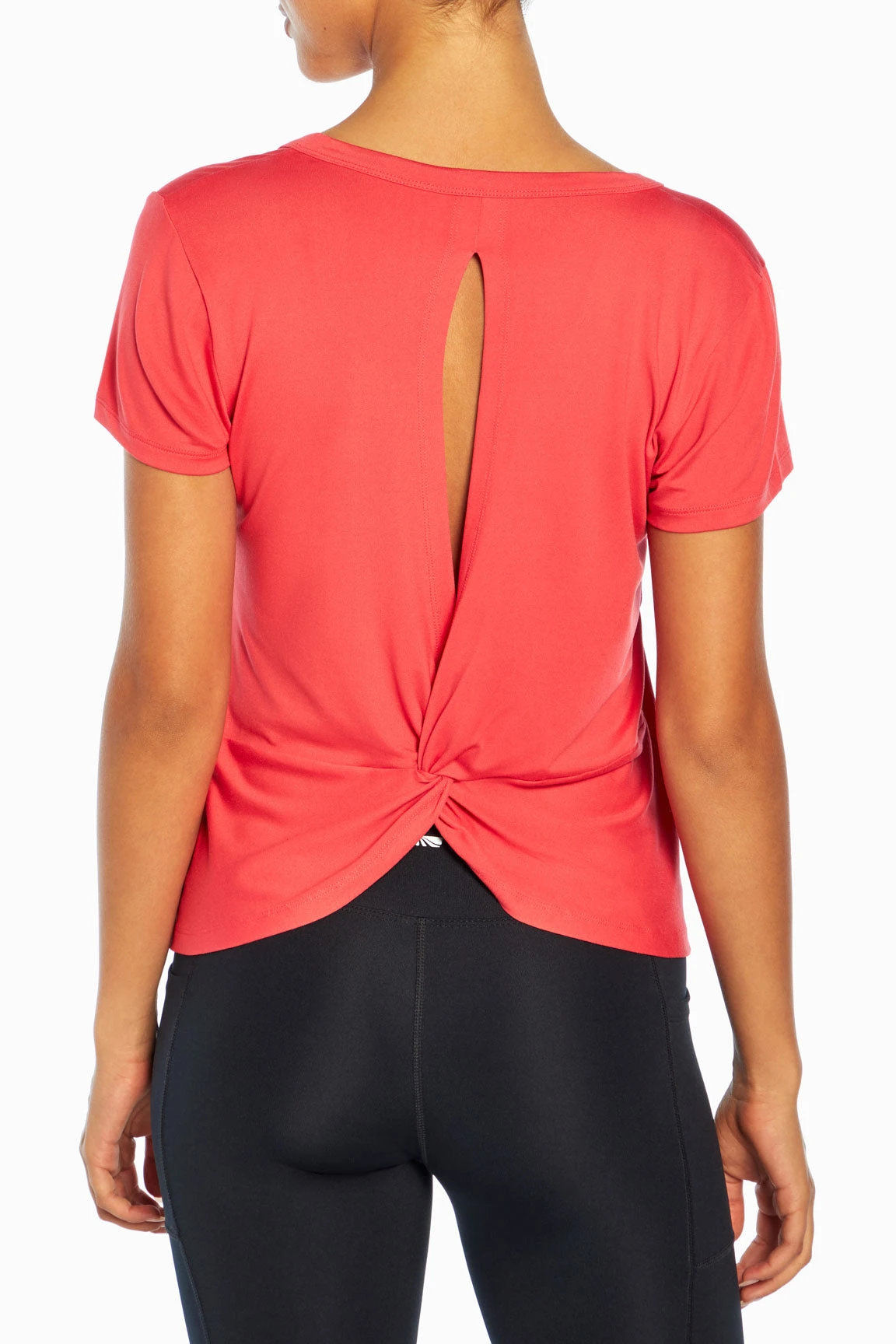 Change things up with this soft, moisture-wicking tee, made from recycled materials — your stylish rest day will feature a scoop neck and back keyhole with twist detail.
